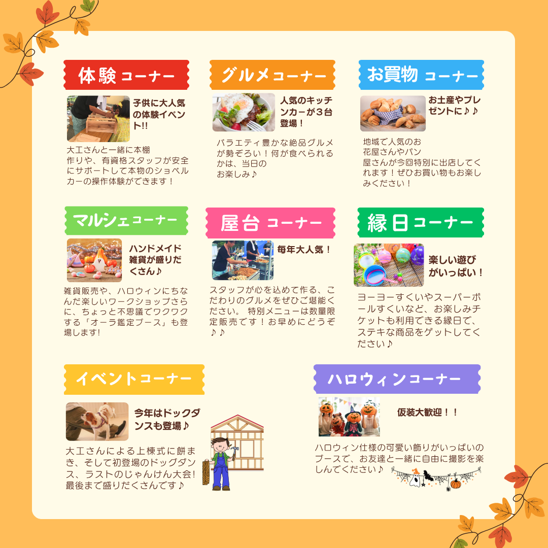 フードやアクティビティやショッピングコーナー、イベントを多数用意しており、大人からお子さままで楽しめる内容です!